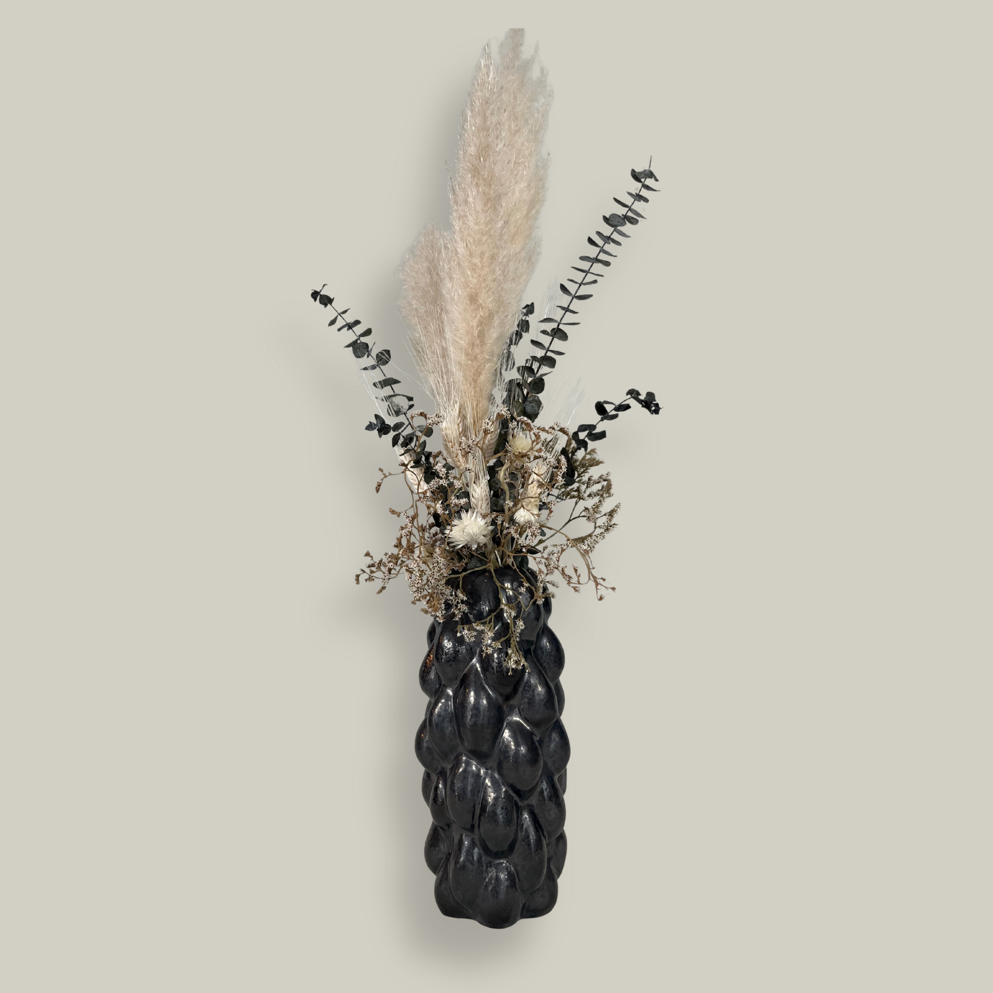 • Vessel: Unique "Knobby" Ceramic Vase (Metallic Charcoal Grey, 14" tall)